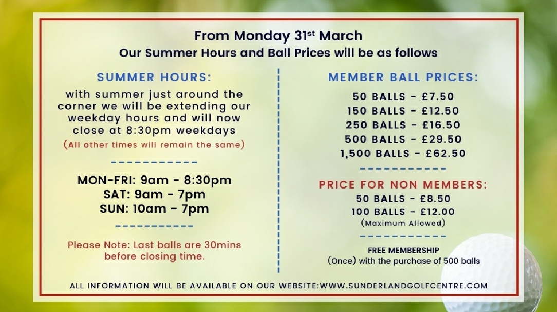 or email chris@sunderlandgolfrange.co.uk